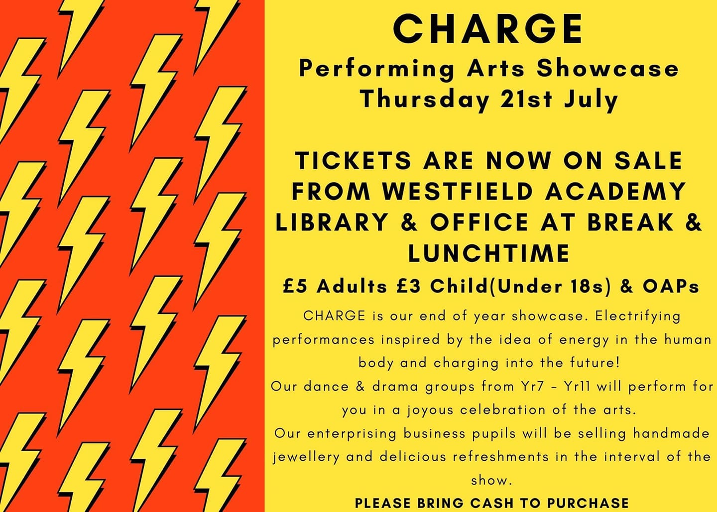 ⚡️CHARGE - Performing Arts⚡️ 🔹️Thursday 21st July @ 7:00pm 🔸️Lower School Theatre